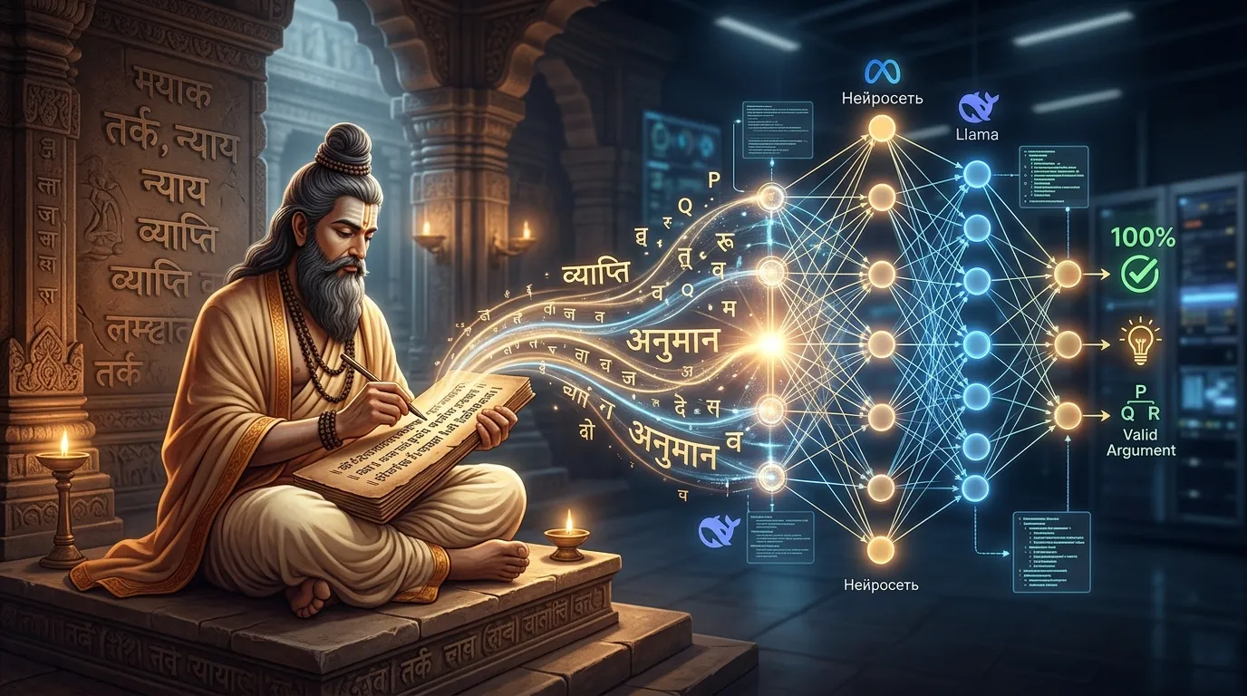Учёные скрестили современные нейронные сети с древнеиндийской логикой Навья-Ньяя возрастом 2500 лет, чтобы победить галлюцинации. Теперь модели Llama и DeepSeek рассуждают по строгим правилам мудрецов и решают сложнейшие задачи со 100% точностью.